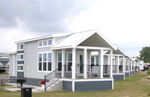 Luxury waterfront cottage. Property includes a heated pool, personal fire table, picnic table and charcoal grill. The front porch view is Sandusky Bay. The cottage is fully appointed with all cookware and linens. The primary suite includes a queen bed, TV and closet with privacy. The cottage also has a loft (you cannot fully stand up in the loft) with a queen bed. The downstairs includes a bunk bed, living room area with fireplace and TV as well as a full bathroom and kitchen. If you have ever wanted to experience a "tiny house," this is your chance! We have a beautiful view of Cedar Point. The property is gated and requires an access code for all guests. We are minutes away from Cedar Point and downtown Sandusky, OH. Each cottage can park 1 vehicle. Overflow parking is available. Not only does our area include Cedar Point, but Downtown Sandusky has may restaurants, bars and shopping. You can ax throw, play "old school" bowling and eat the best tacos in town! Take a stroll on Jackson Pier or take a ferry to Put-in-Bay. The box stores and restaurants are 5 minutes away on Rte 250. If you want to tuck away and have a quiet or romantic get-away, you have options. Schedule a massage with Riverbend Massotherapy or get a bottle of wine at Vine and Olive and take home fantastic gyros. Create the perfect vacation with Bayfront Resort! (ID Required. Min. age is 25 to book.)