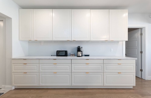 • Kitchen supplies: Keurig coffee maker, coffee k-cups, Taylor's Specialty tea, cane sugar, Nutri-bullet blender, dish detergent & dish washing tabs, paper towels