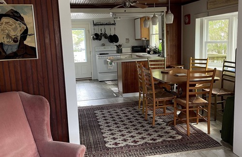 On the main floor there are 2 bedrooms and a bath. (The owner lives in a separate apartment upstairs.) One bedroom has a queen bed and the other has twin beds. The main living room/dining and kitchen are all open and connected.