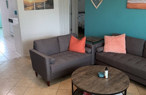 Adorable & cozy 2 bedroom 1.5 bathroom beach cottage has all you need for an escape to the beach. A short 3min walk to a quiet part of the beach, feel the sea breeze & gaze upon clear blue skies. Clean, well loved beach cottage located in a quiet, safe & peaceful neighborhood. Pet friendly Cottage has a large fenced in yard w/an outdoor shower to wash off the sand from a day at the beach. Comfortable living room w/a 65" smart TV, wi-fi included. Spacious bedrooms & newly remodeled bathroom.