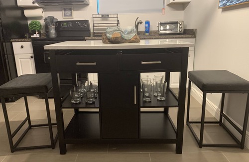 Location. Location. Location. This unique place has a style all its own. Perfect space for two. This bungalow features a 70 inch smart TV, fastest wifi offered, high top dining, desk to work remote and a one of a kind hand- made California king bed. Bedroom has 2 double closets-his & hers. Newly remodeled ready for you to call this place Your BEACH home away from home. The beach is calling…Don’t miss out -this is the perfect place to relax & unwind while listening to the ocean on your own patio