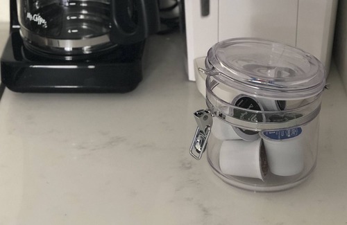 At ground level (no stairs to climb!), this apartment home features a living room and open kitchen area with dining area that seats 6, plus island dining space for 2 adults plus high-chair (included), as well as an over-sized slider with door that opens to a patio perfect for that cold drink after a day at the beach. The kitchen contains everything you'll need for making family meals and memories . It is equipped with stainless steel appliances which include a refrigerator, gas burners with oven, and quartz countertops. Additionally, this kitchen has been well stocked with an assortment of spices, herbs, condiments, cooking appliances, and any dish or accessory that you might need to create that memorable meal. The custom island counter is perfect for kitchen dining and opens into the family room with its own flat screen LCD TV, making it cozy enough for watching the kids or having conversation with family, all while cooking and enjoying the ocean breeze. Just off the living area is our private patio with furniture, allowing for even more space for dining and relaxing after a day at the beach. You can hear the waves crashing, step out and see the fireworks display from Disneyland, or enjoy the cool ocean breezes while lounging in the private patio area.