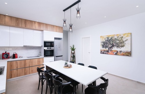 The house offers three fully equipped bedrooms with lovely panoramic sea views, an open plan living room with a fully equipped kitchen with large windows with gorgeous sea views and a big fully equipped dinning table.