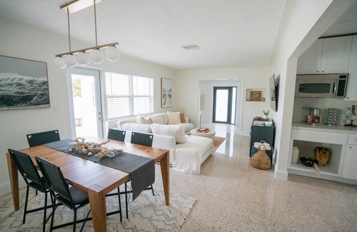 LOCATION, LOCATION, LOCATION! This beautiful bohemian paradise is located in the historic Don Cesar neighborhood. Walk across the street to enjoy your private beach (deeded to the homes in that community). Enjoy the hot tub with a view of the big pink Don Cesar castle. Easy access to the beach bridge to jet to Downtown St. Pete in just 10 minutes! *Per the city of St. Pete Beach's short-term rental restrictions, the home can only be rented once every 30 days.*