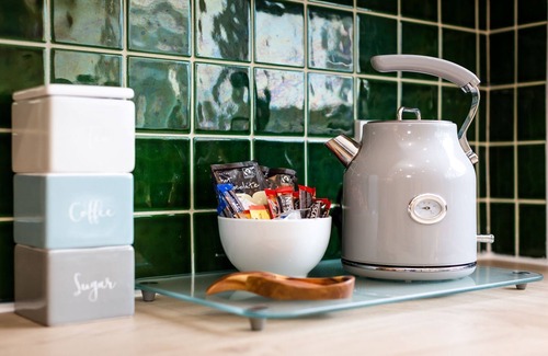 The separate kitchen is well equipped for group gatherings, with a big range cooker, fridge-freezer, microwave, dishwasher and a breakfast table that seats up to six. If you need to sort your laundry, there is a washing machine and separate tumble drier.