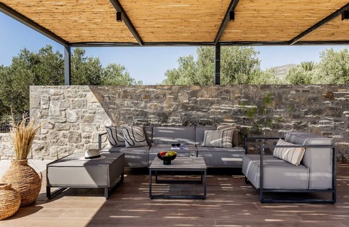 The villa infuses modern design with the simplicity of Cretan styling for a relaxing interior that compliments the laid back vibes of the ocean setting.