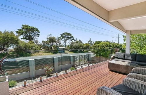 Beach front with magnificent views of Port Phillip Bay, cross the road to the most beautiful and family friendly beach in the Mornington Peninsula. This 1 year young double story house is perfectly designed to make your getaway the most memorable ever, the house has a large balcony overlooking the Bay and a large back decking on the ground floor to host your family and friends BBQ's. Kids safe, fully fenced with electric gate and huge driveway enough for 10 plus cars. The house comprises of 2 large living spaces, split over 2 levels with large flat screen TVs complemented with free WIFI, Netflix and PS4 to entertain all. With 3 bedrooms and a full bathroom on each level plus an extra powder room and a kitchenette on the ground floor, the house is designed to accommodate 2 large families and more. Enjoy the large backyard swing and the outdoor hot and cold water shower after a long day at the beach. With fully equipped kitchen and laundry. This house will satisfy all.