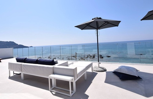 Plakias beachfront villa nostos with private pool panoramic sea view 4 bedrooms up to 8 person 5 minutes walking distance from the center cafes restaurants and supermarkets sea view from every point of the villa