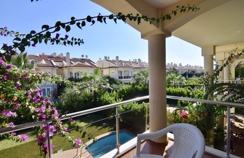 This 4 bedroomed 3 storey villa is located at Sunset Beach Club complex in Fethiye/Calis. This fully air-conditioned Villa has beautiful sea views with a private swimming pool. You can enjoy your outside dining area, equipped with a large table/ chairs, private sunbeds and a BBQ. The first floor also has a large balcony with a seating area perfect for relaxing in the evenings with sea views. All have a seating area with a flat-screen TV, a kitchen with a stove, and a private balcony.