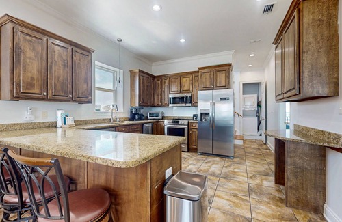 With two sparkling private pools overlooking the sand and surf, multiple beachfront balconies, and a custom outdoor bar surrounded by upscale lounge seating, this property is all about laid-back luxury. Ample seating both indoors and out makes it easy for large groups to gather, share meals, or simply soak in the views of the Gulf of Mexico.