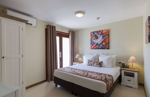 Enjoy a wonderful holiday in Willemstad, located on Curaçao, in this beautiful apartment on a resort. Relax in comfort in this elegantly furnished apartment. Enjoy a spacious living room, kitchen, dining room and balcony. This apartment has all the facilities of a luxury bedroom plus a fully equipped kitchen with cooker, fridge, microwave, toaster, coffee maker, electric kettle, dishes and cooking utensils. The apartment has a comfortable and luxurious interior and is on the ground floor. The apartment has a spacious balcony with a great view of the garden. The entire apartment has air conditioning. As a guest you may use all facilities that the resort offers; including the pool, spa and wellness and Epsilon Dive Center for a fee. You can take the shuttle service twice a day for free to Mambo Beach Boulevard, the supermarket and to Willemstad. At Madero Ocean Club which is a 5 minute drive away, every Acoya guest receives a free beach bed. Every Sunday there is wonderful DJ music on the beach in combination with happy hours! For a fee you can use the babysitting and private chef service that the resort offers.Note: the images are an impression of the room type, but the layout and furnishing may differ per room