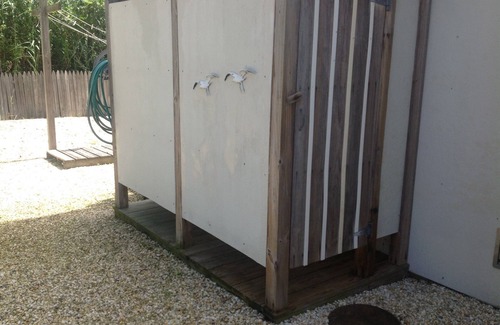 Off the dining room are sliding glass doors that lead out onto the deck with new outdoor furniture and a natural gas grill. Beautiful tile bathrooms with a corner shower in the master bath and glass sliders in master bedroom which lead to private deck. This house has a laundry room with washer and dryer on the same floor. Also included is a roomy outside shower with dressing area. We do not supply Linens and Towels.