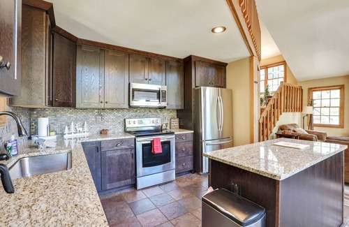 Great cabin for a family getaway or multiple family trip. Cabin is nestled among majestic pines and is picture perfect in every season. Every room is warm and inviting with plenty of space. The upstairs living space offers a living room with a wood burning fireplace and floor to ceiling windows with great views. The kitchen has all the modern conveniences and an open floor plan to the living room. The walk-out lower level offers additional living space, TV, table for meals or game time, and a kitchenette. The bedrooms and bathrooms are top rate. 4 Bedrooms (1 King bed, 2 Queen beds, and 1 Full bed) and 1 Loft with 1 Queen bed. Outdoors are 2 large attached decks, upper and lower, with plenty of chairs, tables, a large propane grill, and great views in all directions. The hot tub under the gazebo is a highlight along with an outdoor fire pit and plenty of space to roam on the property. The ping pong table on the lower deck is also fun for the whole family. Cabin is located in the open woods where sightings of birds, deer, and other wildlife is common.