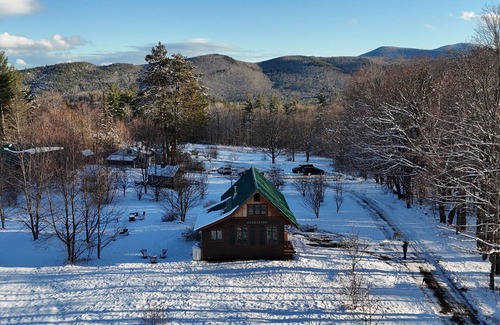 Charming Adirondack cabin perfect for romantic or family getaway! Gorgeous mountain views, private and cozy. Located on family compound of glamping tents and unique cabins. Wildflower meadows to wander, firepit for star gazing and just down the road from beautiful 13th Lake. Enjoy a hot tub experience in our new Japanese temple-like spa! Close to rail biking, whitewater rafting and the town of North Creek.