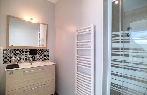 Rental in Donville les Bains in a small new building with 3 apartments, very bright, spacious and very comfortable duplex. The apartment is very well located, 400 m from the beach, 500 m from Granville and the train station.
