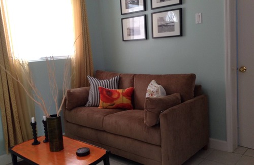 A sofa bed, air conditioning, and a desk are featured at this 1-bedroom, 1-bathroom rental. Enjoy the WiFi and cable/satellite TV. Bathroom amenities include a hair dryer, towels, and toilet paper. The kitchen is equipped with an oven, a stovetop, and a refrigerator, as well as a coffee maker, an electric kettle, and an ice maker. And you can even pack a bit lighter because there's a washer and dryer. Other amenities include bed sheets, an ironing board, heating, and a desk chair.