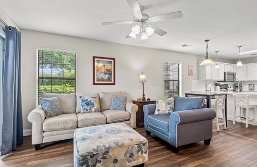 True Blue is one of many world class golf course and we overlook the lake and #4 Fairway! We have the most private and tranquil views of the course. We are located on the 1st floor. The condo comfortably sleeps four; King bed in primary bedroom and a Queen bed in the guest/2nd bedroom.