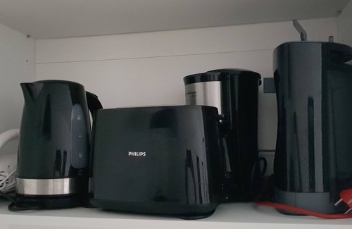 - 1 MAIN AIR-CONDITIONED ROOM (BEDROOM CORNER) WITH FULLY EQUIPPED KITCHEN CORNER (Equipment: Internet box and TV, bluethoot speaker, flat screen TV, Fridge-freezer no frost 300l, electric hob, oven, coffee maker, kettle, microwave),