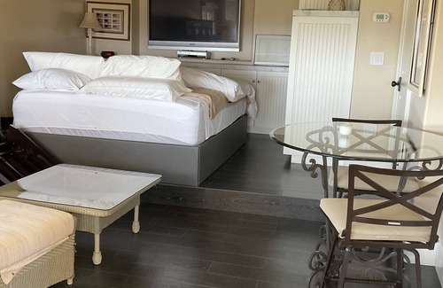 BEAUTIFUL Large Ocean view guest suite. Walking distance to many restaurants. Beautiful Koi ponds visible from your private deck. Kitchenette has a refrigerator, microwave and coffee maker. Large bathroom with oversize shower. Cozy California king size bed. DIRECTV with every channel imaginable and wireless Wi-Fi.