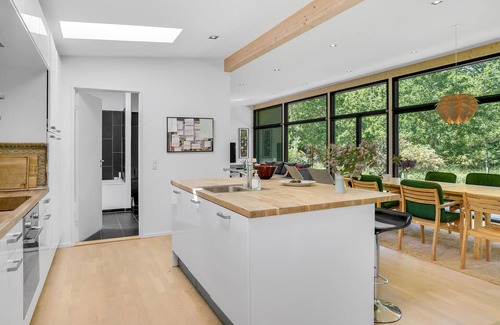 This fantastic vacation home is an experience! Here you are completely protected from unwanted guests and views, in the middle of the forest, surrounded by birdsong and large trees. Enjoy your breakfast on the large wooden terrace, relax in the shade of the trees in the hammock or take a walk through the magnificent nature of Odsherred, which invites you to explore - by car, by bike or on foot.