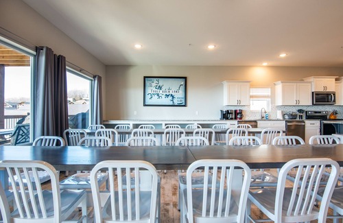Our new 10 bedroom/11 bathroom home overlooking Table Rock Lake was built specifically for large groups and families, comfortably sleeping up to 40 guests.