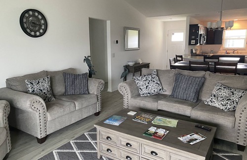 This beautiful brand new 3 bedroom/2 bathroom home is just perfect for up to 6 guests, whether it be a family or a few couples vacationing together. For your convenience, we have a combination Coffee Pot/K-Cup Machine, WIFI, & Smart TV with a Basic Xfinity Cable package & you can stream your favorite channels. The Kitchen is stocked with basic cooking utensils, pots, pans, glasses, & dishes to prepare meals at home or there are some nearby take-out menus from local favorites. We have a BBQ Grill available as well. Additional bedding, towels, & a blow dryer are on site. You are also welcome to use our 2 pedal bikes & Gas Golf Cart so you can explore the Villages.