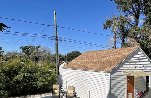 This peaceful bungalow-style studio offers everything you could ask for in the heart of St. Pete. Step outside and enjoy the pool, hot tub, grill, and wood-fired pizza oven. Inside what is a beautifully-converted garage you will find a cozy queen bed, large sofa, private bathroom, fully-stocked kitchenette, microwave, coffee maker, hot plate, washer, dryer, AC, high-speed Wi-Fi, and your favorite streaming services. You will also have private parking access via the side driveway.