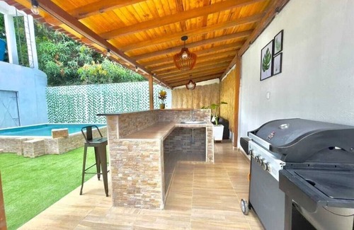 Unique, modern and luxurious 5 bedroom, 7 bathroom home, privately situated and uniquely designed to accommodate your family, guests, and friends. With a private pool, cabana, poolside bar, and barbecue area, we have everything you need for your next vacation!! This spacious home has been meticulously designed for groups and gatherings and is an entertainers dream!