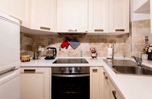 The property comes equipped with a kitchenette that has an oven, dishwasher, four ceramic glass hob hotplates, a toaster, kettle, microwave, and an electric coffee machine. It also has a shower area with bidet and toilet facilities. Air conditioning and forced-air heating are available, with the heating option only accessible from November 1st to April 15th. Other amenities include a washing machine, baby cot for up to 2-year-olds, and a hair dryer. Complimentary WiFi internet is provided.