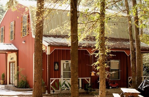The Loft is a beautiful professionally decorated property that is quiet and secluded yet conveniently located. This spacious retreat nestled in the Sam Houston National forest boasts an abundance of wildlife with plenty of room for parking your boat, exhibition, or horse trailers. This getaway sleeps 8 and includes extra media and game rooms complete with pool table and air hockey. Relaxing in nature with all the amenities that make getting away fun. Elevator, fireplace, garden tub, walk in/roll in shower, fully equipped kitchen, washer/dryer, charcoal grill, upper and lower refrigerators, 2 coffee makers, 2 microwaves, 2 televisions, and WIFI complete this wheelchair ADA accessible property. 1 King, 1 Queen, and 2 bunk beds. Great property for families and couples less than 10 miles from the Galaxy Executive airport and the Lone Star Convention/ Expo center. Less than 15 miles to Beautiful Lake Conroe, shopping at the Woodlands, dining and local golf courses make for a great vacation
