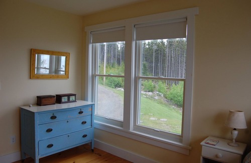 There is a half bath downstairs and three bedrooms and a full bathroom (with claw foot tub and separate shower) upstairs. The master bedroom has wonderful views, a full closet and queen bed. The guest room has a double bed, full closet and a water view, and the 'kids' room has two single beds and an amazing birds eye view of the water. This house combines casual elegance with charm for the perfect getaway. The house is pet friendly (great trails for dog walking), though we may require a deposit depending on your dog(s). Fully equip kitchen for those who like cooking. If you prefer to eat out, lots of terrific restaurants in Rockland area (20 mins away).