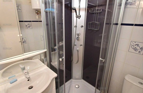 Beautiful Studio on the ground floor offering you, a cabin entrance welcoming two single beds (90) bunk, a beautiful living room with kitchen area equipped with dishwasher, a 140 bed, a lounge area with sofa giving you a direct view on the sea.