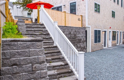 Leave the car at home as this convenient vacation destination, a sub-5 minute walk to iconic spots near the West End such as Joe Coffee, Boatslip, Mussel Beach, Spiritus Pizza and Jimmy's Hideaway will entice you to experience all that Provincetown has to offer. Or if quiet contemplation is what you seek, this new construction home away from home will beckon you back to relax and find your zen…whether that means lounging on the sumptuous couches in front of the gas fire watching movies on the large TV, cooking and entertaining in the Chef's kitchen or reading a book on the exclusive use patio to a backdrop of birds, wind chimes and soothing fountain. ***New for 2023: The walk out basement has been finished into additional living space + a half bath to join the in unit washer/dryer (now stacked). Not intended to be another bedroom as it's still limited to 4 people max, but rather to give another area for guests to spread out. A couch and chair with accompanying tables create a nice space to read or play games. The additional built in book case with electric fireplace, TV and SONOS sound system also create a nice movie watching space. With temperature control and enough natural light from two windows, the nicely appointed space still allows room for beach gear in the closet and a few bikes near the entrance.