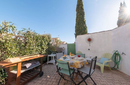 Small terraced house "Les Oyats" offers a convenient vacation rental in the district of le Boucanet, Le Grau-du-roi, France. Situated 1.5 km from the center and just 600 m from the sea, this property provides amenities like Internet Wifi and Parking.