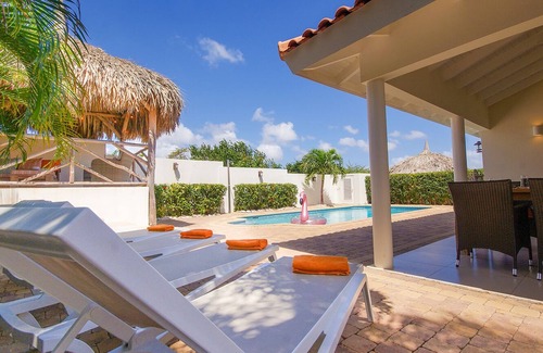 Villa Kas Oraño is a beautiful, detached villa at the private residential area of Marbella Estate. This district is located at Jan Thiel, a few minutes away from the Jan Thiel Lagoon and the Spanish Water. The villa has a spacious private swimming pool, a tropical garden, a porch and a palapa that is located a little higher, and therefore the first place to catch that lovely Carribean breeze. The villa offers a lot of privacy and has three bedrooms, two bathrooms, a cozy living room and a fully equipped kitchen. With the sea, beach, restaurants, shops and supermarket within a five minutes drive, this is the ideal place for an unforgettable holiday at wonderful Curaçao!