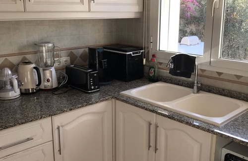 elcoming entrance leads into a beautiful living room equipped with two convertible and comfortable sofas, with an open fire and television. The dining room is adjoining and opens onto the terrace with breathtaking views of the reserve and the Montgo, unless you prefer to watch your little world frolic in the swimming pool below. Breakfast on the terrace in high season. On the right, the large master bedroom with private bathroom and access to the terrace. A beautiful fully equipped kitchen opens directly onto the dining room. On the lower floor, two large comfortable bedrooms, one with a double bed, the other with two single beds. new bedding, with large built-in cupboards. Bathroom with Italian shower. The downstairs hall opens onto a superb covered terrace which offers an ideal space for an aperitif in the shade and direct access to the extended terrace bordering the beautiful 8m by 5m swimming pool. A sheltered outdoor kitchen with barbecue allows you to prepare good meals by the pool, in the sun or in the shade. The well-equipped laundry room also looks outside. The sloping garden does not require any maintenance. Below you will enjoy the plateau ground for petanque. The private parking is fenced and overlooks a covered area with table tennis. The villa is fully air conditioned, it is equipped with Wifi and satellite TV. The district of Covatelles is very quiet. Located 2min from the golf course of Javea, and the best gourmet restaurants in the region.