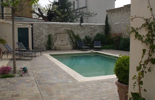 (Text automatically translated) This beautiful fully restored and furnished with taste and refinement house is built on three levels. On the ground floor, in a row: fully equipped kitchen, dining room, lounge, kitchen toilet. On 1st floor: laundry, 3 bedrooms, 3 bathrooms and 3 toilets. 2nd floor, suite of 60 m2 (stone) consists of a lounge / TV game / office, a bedroom and a bathroom / WC 20 m2. Very nice furniture, air conditioning, wi-fi, Bose sound systems, flat screens in bedrooms and living rooms. All rooms have views of the courtyard garden with swimming pool, solar shower, covered terrace, barbecue and beautiful furniture. General view of the church tower and castle ruins. The courtyard is surrounded by beautiful stone walls.