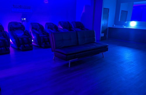 During business hours we are the premiere couples massage and group spa party venue around. Now we are allowing select couples to use the space overnight. Big TV, surround sound voice controlled music, 2 Futons, and multiple massage chairs to serve you. All within a blue/purple room with great ambiance. You also get full control over the room temperature.