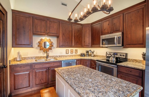 Sunny and bright by day, cozy and warm by night, the open concept is great for spending time with your special people. This home features a vaulted great room with a magnificent floor-to-ceiling stone wood burning fireplace, rustic barnwood beams, and heated bathroom floors. Opening up to the great room is the inviting dining room and fully-equipped kitchen complete with granite countertops and all the cookware and dishware you need to prepare a fantastic meal. Just off the great room is the Master Suite featuring a king-size bed and spacious en suite bathroom. The light-filled second bedroom, also with king bed, offers charming antique furnishings and a shared full bathroom with upgrades. The queen-size living room couch pulls out to sleep an additional two persons.