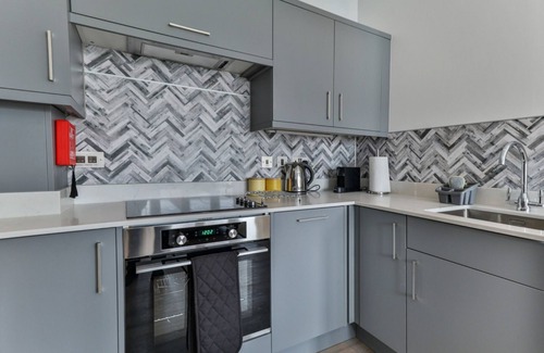 In the heart of Filey, just a few minutes walk from the sand and the sea, is this brand new holiday apartment! Belle House offers everything you need for your perfect seaside getaway, with a great selection of shops, cafes and restaurants on the doorstep and free allocated parking included.Located on the second floor of the building, the apartment is open plan, offering a bright, spacious and airy living, dining and kitchen space. With a wall mounted flat screen TV, comfy sofas, and a selection of board games, the living area is perfect for relaxed family fun after a day at the beach.The kitchen is stylish and excellently equipped, providing a full oven, stovetop, refrigerator-freezer, dishwasher, washer-dryer, microwave kettle and toaster, and even a Nespresso machine, for that perfect morning coffee while you make plans for the day.The bedroom has lovely decor, with a king-size bed, plenty of storage and thoughtful touches like a hairdryer, clock radio and hangers in the closet. With a second television on the wall in here too, it's the ideal set-up for a holiday sleep-in!The bathroom is very smart and contemporary, with a bathtub with main shower over, toilet, sink, heated towel rack and a back-lit mirror to give a real luxury feel.While the seaside town of Filey is famous for a great day at the beach, there are various other attractions in the local area that will leave you spoiled for choice with where to explore first.Glen Gardens is within easy walking distance less than a mile away, and offers beautiful parkland and gardens to explore, adventure golf and stunning views out over the coast. If you take your golf a little more seriously, Filey Golf Club is very nearby, just a little further on from Glen Gardens.For those wanting to immerse themselves in nature, why not make your way down to the Flamborough Headland Heritage Coast for a spot of spectacular bird watching at the Bempton Cliffs. An established nesting spot from March – October, over 200,000 Puffins, Gannets, Kittiwakes and Guillemots take to the ledges of the white chalk cliffs almost 400 feet up from sea level.The larger town of Scarborough is also only roughly a 20 minute drive away and offers lots more to see and do. You can visit the famous Rotunda Museum, a beautiful building housing unusual and interesting artifacts, or take a tour around Scarborough Castle, a medieval stronghold now looked after by English Heritage, with a busy calendar of live events throughout the year.Book easily online today through the Best Retreats website, and start looking forward to your well-deserved vacation!Access Details:The apartment is located on the second floor, accessible only by two flights of stairs. There are handrails on the stairs.(Note: In this case, there are no significant differences between British and American English in this text.)