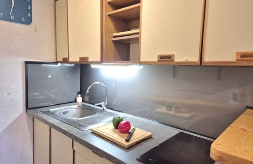 "Belle Rive", 2-room apartment 34 m2 on 1st floor. Bright, partly renovated in 2020, practical and comfortable furnishings: living/dining room with TV (flat screen). Exit to the balcony. Small, open kitchen (2 hot plates, mini-oven, microwave, freezer, electric coffee machine). Upper floor: 1 room with 1 french bed (1 x 140 cm, length 190 cm). Open gallery with 1 french bed (1 x 140 cm, length 190 cm). Bath/WC. Electric heating. Balcony 10 m2. Balcony furniture. Facilities: washing machine. Internet (WiFi, free). Parking space n 1 (1 car). Please note: non-smokers only. TV only FR. Smoke alarm. Instead of an enclosed bedroom, some sleeping areas are located in an open-plan area (gallery, alcove, etc.). 3528800285758