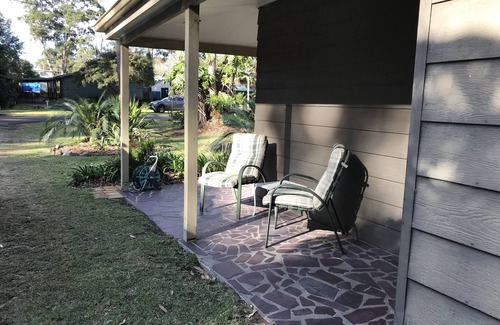 Tan Terfyn has a queen bedroom, a double bedroom and a third room with single bed. It has been renovated and has a modern bath/shower room, convenient kitchen and comfy living area with sofas, wood stove and TV. At the back there is a fully fenced patio area with BBQ and patio table and chairs which looks out into Murramarang National Park.