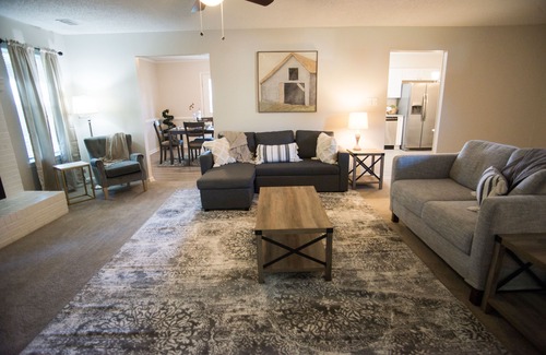 Guest amenities include complimentary Wi-Fi and Smart TVs; Fully stocked kitchen with cookware, dishes, silverware, prep-ware, microwave, and coffee maker; Wood burning fireplace; Fresh linens and towels for each guest; and full-size washer and dryer. Secure attached garage parking, an oversized driveway for additional vehicles, and a large yard with charcoal BBQ grill, add to the long list of thoughtful on-property extras.