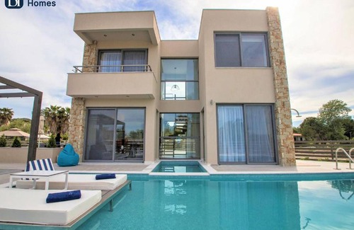 Η μοναδική αυτή βίλα είναι μια εντελώς ιδιωτική διώροφη βίλα. Η ευχάριστη και κομψή εσωτερική της διακόσμηση συμφωνεί απόλυτα με τις τελευταίες τάσεις της μόδας. Η βίλα γίνεται ένα με την ιδιωτική της πισίνα, πράγμα που σας δίνει την ευκαιρία να απολαμβάνετε τη θέα του νερού καθ' όλη τη διάρκεια της ημέρας μέσα από τα μεγάλα και ευήλια παράθυρά της. Η θέα τόσο από το μπαλκόνι όσο και από την πισίνα είναι αξιοσημείωτη και η πρόσβαση στη θάλασσα είναι μόλις 5 λεπτά με τα πόδια. Επίσης, με SMART τηλεοράσεις 43" σε όλα τα δωμάτια έχουμε φροντίσει, ώστε τόσο οι βραδιές σας όσο και ο ύπνος σας να είναι ανεπανάληπτα.