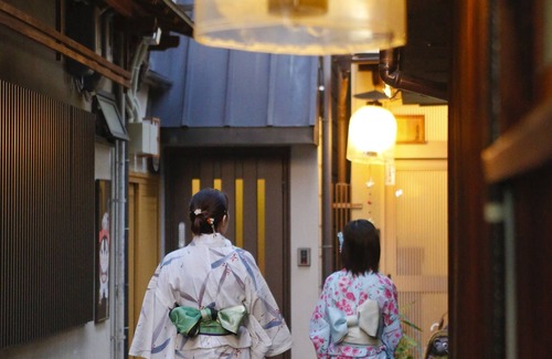 The traditional house is located in the heart of Kyoto-Gion, Kyoto's most famous geisha district. Yet a very quiet residential area with traditional Japanese houses.