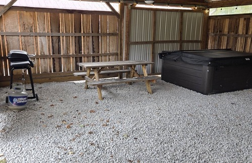 Bigfoot Lair is about 5 minutes to Rock House, 6 minutes to Conkles Hollow and 19 minutes to Old Man's Cave. 1 private bedroom with a King bed. There is a sleeper sofa and a flat screen Tv in the main room. Come relax in the hot tub and gaze at the open sky. We have a propane and a charcoal grill.