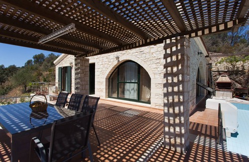 ECO: Characteristic of this, the villa is the wood and the treated and raw lefki- cream stone ALFAS from Rethymno, built in Byzantine style, internally and externally, by lovely local craftsmen in projects and studies of the owner's architect daughter. At all stage of construction (2006-2008) tried, as far as possible, the materials are carefully ecologically