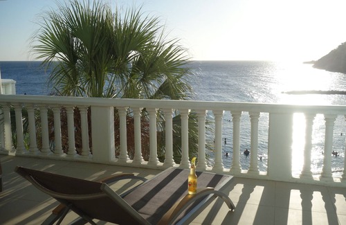 Right next to the building there is a private swimming pool for guests of Blue Emerald with a view over the sea and there are sun loungers to enjoy the surroundings.