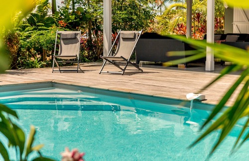 The terrace of 41m ² will allow you to take your meals with family and to bask in your shaded outdoor lounge, but also to enjoy the warmth of the Antilles during your sunbathing. The private pool is ideal for a refreshing dip while admiring the soothing views of the countryside.