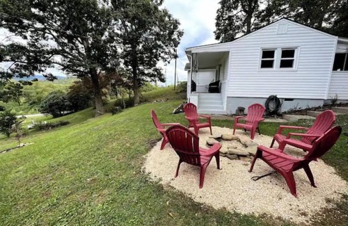 Enjoy gorgeous long range mountain views from the front porch of this newly renovated 2 bedroom 1 bath cottage. Watch the abundance of wildlife throughout the property. Make s’mores and sip a drink at the outdoor fire pit. Located on the East side of Asheville, It’s a 2 minute drive to the Blue Ridge Parkway, gas, groceries and a few great restaurants. Only a 10 minutes drive to downtown Asheville. Beautiful rural setting but close to everything Asheville.